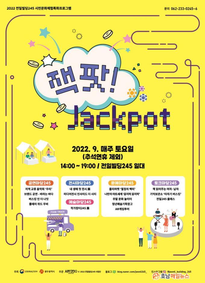 Áö³ 5¿ù14ÀÏ ½ÃÀÛÇÑ Æ¯ÈÇÁ·Î±×·¥Àº 8¿ù ÇÑ ´Þ°£ ÈÞÀå ±â°£À» °ÅÄ¡¸ç ÀçÁ¤ºñ¸¦ ¸¶Ä¡°í 9¿ù3Àϰú 17ÀÏ, 24ÀÏ ¿ÀÈÄ 2½ÃºÎÅÍ 7½Ã±îÁö ÀüÀϺôµù245(±¤ÁÖ±¤¿ª½Ã µ¿±¸ ±Ý³²·Î245)¿¡¼ ´Ù½Ã ½ÃÀ۵ȴÙ. 9¿ù¿¡´Â ´Ù¾çÇÑ °ø¿¬, Àü½Ã, ºÏÄܼƮ, üÇè µîÀ» ÅëÇØ ¡®ÀèÆÌ(Jackpot)¡¯À» ÅͶ߸®´Â ÁÖ¸»À» º¸³¾ ¼ö ÀÖµµ·Ï dz¼ºÇÑ ¹®È¿¹¼ú ÇÁ·Î±×·¥À» ¸¶·ÃÇß´Ù.