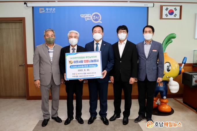 ÇÑÆí, (»ç)´ëÇÑÇѵ·Çùȸ ¹«¾È³²ºÎÁöºÎ¿¡¼´Â ¸Å³â 2ȸ ÀÌ»ó ¹«¾È±º °ü³»¿¡ ¡®Çѵ·³ª´®Çà»ç¡¯ ÀÏȯÀ¸·Î µÅÁö°í±â ¼ÒºñÃËÁø°ú Çѵ·»ê¾÷ À̹ÌÁö °³¼±À» À§ÇØ ±âºÎ¸¦ ÇØ¿ÔÀ¸¸ç, À۳⿡µµ µÅÁö°í±â 2,400kg(2200¸¸¿ø »ó´ç)À» »çȸº¹Áö½Ã¼³ 47°³¼Ò¿¡ Àü´ÞÇÏ´Â µî Áö¼ÓÀûÀÎ ³ª´®È°µ¿À¸·Î Áö¿ª»çȸÀÇ ±Í°¨ÀÌ µÇ°í ÀÖ´Ù.