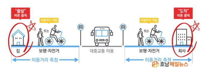 °ÅÁÖÁö µî¿¡¼ Ãâ¹ßÇÒ ¶§ ¾Û¿¡¼ ¡®Ãâ¹ß¹öư¡¯À» Ŭ¸¯ÇÏ°í ¹ö½º ½Â¡¤ÇÏÂ÷ ÈÄ ¸ñÀûÁö¿¡ µµÂøÇØ ¡®µµÂø¹öư¡¯À» Ŭ¸¯Çϸé Çö±Ý ¸¶Àϸ®Áö°¡ Àû¸³µÈ´Ù. ¸¶Àϸ®Áö´Â À̵¿ °Å¸®¿¡ µû¶ó ±³Åëºñ 2õ¿ø ¹Ì¸¸ÀÎ °æ¿ì ÃÖ´ë 250¿ø, 2~3õ¿øÀº 350¿ø, 3õ¿ø ÀÌ»óÀº 450¿ø±îÁö Â÷µî Àû¸³µÈ´Ù.