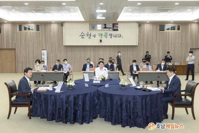 À̳¯ ȸÀÇ¿¡´Â ³ë°ü±Ô ¼øÃµ½ÃÀå, Á¤±â¸í ¿©¼ö½ÃÀå, Á¤ÀÎÈ ±¤¾ç½ÃÀåÀÌ Âü¼®ÇÑ °¡¿îµ¥ 3ã¼ ½ÃÀåÀº °æÀü¼±(±¤ÁÖ¼ÛÁ¤~¼øÃµ) ÀüÃ¶È »ç¾÷, Àü³² µ¿ºÎ±Ç Àǰú´ëÇÐ À¯Ä¡, ¿©¼ö±¹°¡»ê´Ü ÁøÀÔµµ·Î ±¹°¡°ü¸®, Àü³² µ¿ºÎ±Ç °ø°ø±â°ü 2Â÷ ÀÌÀü À¯Ä¡ °øµ¿Çù·Â µî 15°ÇÀÇ Çù·Â»ç¾÷ ÃßÁø»óȲ°ú °èȹÀ» Á¡°ËÇß´Ù.