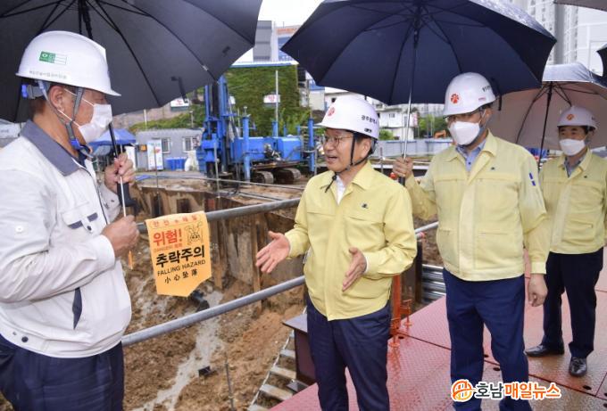 ° ½ÃÀåÀº À̳¯ ¿ÀÈÄ »ó¹«¿ª Àα٠µµ½Ãöµµ 2È£¼± °Ç¼³ ÇöÀåÀ» ã¾Æ °ø»ç °ü°èÀڷκÎÅÍ ´ëdz ´ëºñ »óȲÀ» º¸°í¹Þ°í ¾ÈÀü´ëºñ »óȲÀ» Á¡°ËÇß´Ù. ÀÌ ÀÚ¸®¿¡¼ ° ½ÃÀåÀº ħ¼ö‧³¯¸² ¹æÁö´ëÃ¥ µîÀ» Á÷Á¢ ÇöÀå¿¡¼ È®ÀÎÇϰí öÀúÇÑ ÅÂdz ´ëºñ ż¼¸¦ °®Ãâ °ÍÀ» ´çºÎÇß´Ù.