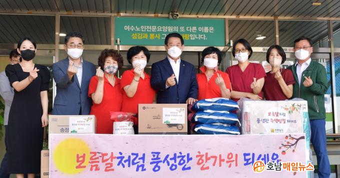 Àü³²µµ´Â Ãß¼®À» ¸Â¾Æ º¸Èư¡Á·°ú »çȸº¹Áö½Ã¼³ 495°³¼Ò¿¡ °ÅÁÖÇÏ´Â 1¸¸ 3õ445¸í¿¡°Ô 1¾ï 5õ¸¸ ¿ø »ó´çÀÇ »ýȰÇʼöǰÀ» Àü´ÞÇϰí ÀÖ´Ù. ¶ÇÇÑ Àü³²µµÃ» ½Ç±¹Àå ÀÌ»ó °£ºÎ °ø¹«¿ø°ú µµÀÇ¿ø µîµµ ¾î·Á¿î ÀÌ¿ô°ú ½Ã¼³À» ¹æ¹®ÇØ À§¹®Ç°À» Àü´ÞÇÏ´Â µî ÀÌ¿ô»ç¶û ³ª´®¿¡ ¾ÕÀå¼°í ÀÖ´Ù.