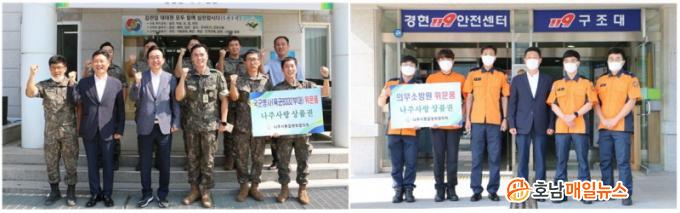 ³ªÁÖ½ÃÅëÇÕ¹æÀ§ÇùÀÇȸ ÀÇÀåÀÎ À±º´Å ½ÃÀåÀº 7ÀÏ Áö¿ª À°±º¡¤°ø±ººÎ´ë 4°÷À» ¹æ¹®ÇØ À§¹®±Ý(³ªÁÖ»ç¶û»óǰ±Ç)À» Àü´ÞÇÏ°í °¢ ºÎ´ë ¾Ö·Î»çÇ×À» ûÃëÇß´Ù.