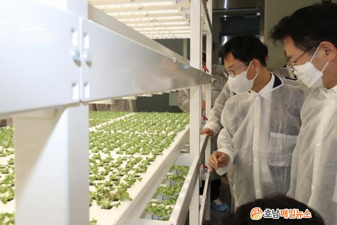 °¡Àå ÇÙ½ÉÀÌ µÇ´Â ½º¸¶Æ®ÆÊ ½Ä¹°Àç¹è½ÇÀº 1¡2ÃþÀ» ÇÕÃÄ 330§³(100Æò)±Ô¸ð·Î Á¶¼ºµÆ´Ù. Àç¹èÆÇÀ» 5´ÜÀ¸·Î ¼³Ä¡ÇØ ½ÇÁ¦ Àç¹è¸éÀûÀº 1650§³(500Æò)¿¡ À̸¥´Ù. ¹ß´ÞÀå¾ÖÀÎÀÇ ³ëµ¿·ÂÀ¸·Îµµ »ý»êÀÌ °¡´ÉÇÑ ÃÖ÷´Ü ³ó¾÷¹æ½ÄÀ» Àû¿ëÇß´Ù. ¹ß±¤´ÙÀÌ¿Àµå(LED) Á¶¸íÀ¸·Î ºûÀ» °ø±ÞÇϸç ICT(Á¤º¸Åë½Å±â¼ú)¸¦ Ȱ¿ëÇØ ¿ø°ÝÀ¸·Î °£´ÜÇÏ°Ô ¿Âµµ, ½Àµµ, ÀÌ»êÈź¼Ò ³óµµ, Á¶¸í ¹à±â µîÀ» Á¶ÀýÇÒ ¼ö ÀÖ´Ù.