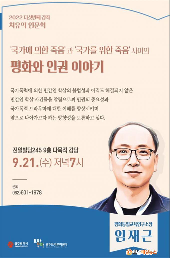 ÇÑÆí, ±¤Áֽô ±¹°¡Æø·Â ÇÇÇØÀÚÀÇ Æ®¶ó¿ì¸¶ Ä¡À¯¿Í ¾ÈÀüÇÑ Ä¡À¯°øµ¿Ã¼ Á¶¼ºÀ» À§ÇØ 2013³âºÎÅÍ ¸Å³â ¡®Ä¡À¯ÀÇ Àι®ÇС¯À» ¿°í ÀÖ´Ù. ¾ÕÀ¸·Î ¡ã10¿ù ÀÌÁö¼±(Çѵ¿´ë ±³¼ö¡¤ÀÛ°¡) ¡ã11¿ù ÀÌÀçÀÇ(5¡¤18±â³äÀç´Ü ¿¬±¸À§¿ø) ¾¾ °¿¬ÀÌ ¿¸± ¿¹Á¤ÀÌ´Ù.