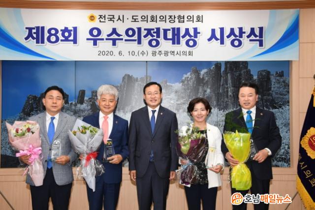 ½Ã»ó½ÄÀº 10ÀÏ(¼ö) ±¤ÁÖ±¤¿ª½ÃÀÇȸ ¿¸°½Ã¹ÎȦ¿¡¼ ÀÚüÀûÀ¸·Î ¿·È´Ù.¡®¿ì¼öÀÇÁ¤ ´ë»ó¡¯Àº Àü±¹ ½ÃµµÀÇȸ ÀÇ¿øµéÀÌ ÆîÄ£ ¿ì¼öÇÑ ÀÇÁ¤È°µ¿À» ¹ß±¼․ÀüÆÄÇÏ¿© ÀÇÁ¤ ¿ª·®À» ³ôÀ̱â À§ÇØ Á¦Á¤µÈ »óÀÌ´Ù. 1³â µ¿¾È ÁÖ¹ÎÀÇ »îÀÇ Áú Çâ»ó°ú ½ÃÁ¤ Çö¾È¿¡ ´ëÇÑ ÁýÇàºÎ °ßÁ¦ µî Áö¿ª ¹ßÀü¿¡ ±â¿©ÇÑ °øÀÌ Å« ÀÇ¿ø¿¡°Ô ¼ö¿©µÈ´Ù.