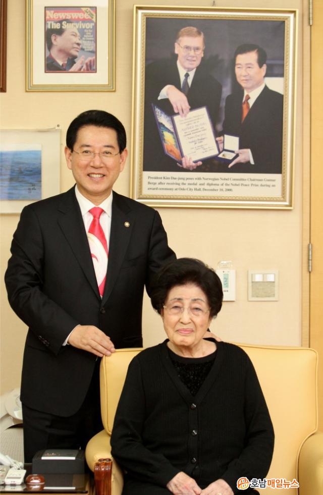 ÇÑÆí, ±è¿µ·Ï µµÁö»ç´Â ¡°±è´ëÁß ´ëÅë·É´Ô°ú ÀÌÈñÈ£ ¿©»ç´Ô²²¼ Àϱ¸½Å Æò»ýÀÇ Á¤½Å¿¡ ´ëÇØ ¾ÖƶÇÑ ¸¶À½À¸·Î Àü³²¹ßÀüÀ» °£ÀýÇÏ°Ô ¹Ù¶ó½Å µÎ ºÐÀÇ ¸¶À½À» ´ã¾Æ µµ¹Î°ú ÇÔ²² »õ·Î¿î õ³âÀ» ¿¾î°¡°Ú´Ù¡±°í ´ÙÁüÇß´Ù.