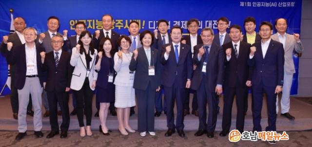 ÇÑÆí, ¹Ú¿µ¼± Àå°üÀº ¾÷¹« Çù¾à½Ä¿¡ ¾Õ¼ ÀΰøÁö´É(AI)»ê¾÷ Æ÷·³¿¡¼ ±¤ÁÖÁö¿ª Áß¼Ò±â¾÷ÀÎ ´ëÇ¥¿Í À¯°ü±â°ü ÀÓÁ÷¿ø µî 130¿©¸íÀ» ´ë»óÀ¸·Î µðÁöÅÐ °æÁ¦·ÎÀÇ ´ëÀüȯ, ½º¸¶Æ® ´ëÇѹα¹¡¯À» ÁÖÁ¦·Î °¿¬À» Çß´Ù.