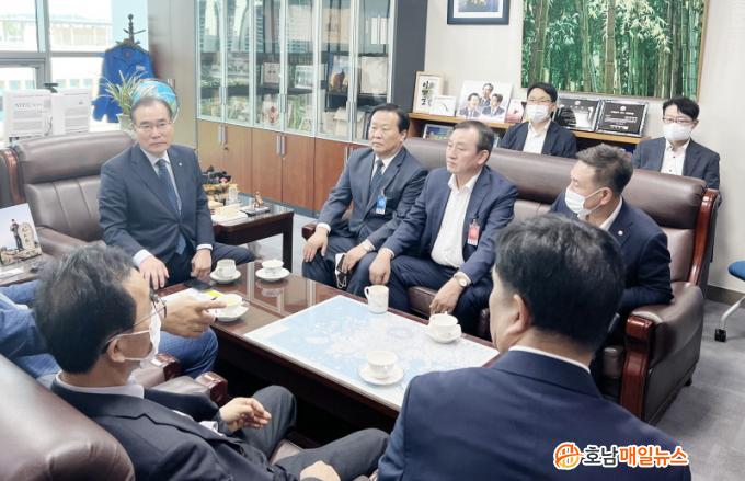 À̹ø ¹æ¹®¿¡´Â À̺´³ë ´ã¾ç±º¼ö¸¦ ºñ·ÔÇØ Ãֿ븸 ´ã¾ç±ºÀÇȸ ÀÇÀåÀÌ µ¿ÇàÇßÀ¸¸ç, ´ã¾ç Ãâ½Å À̰³È£ ±¹È¸ÀÇ¿øÀ» ºñ·ÔÇÑ Á¶¿À¼·, À±¿µ´ö, °í¿ëÁø ÀÇ¿ø°ú À̼º¹é Àç°æÇâ¿ìȸÀå µî 8¸íÀÇ Çâ¿ì¿Í ¸¸³ª Àç°æÇâ¿ìȸ Çâ¿ì ½°ÅÍ Á¶¼º °ü·Ã Çö¾È¹®Á¦µµ ³íÀÇÇß´Ù.