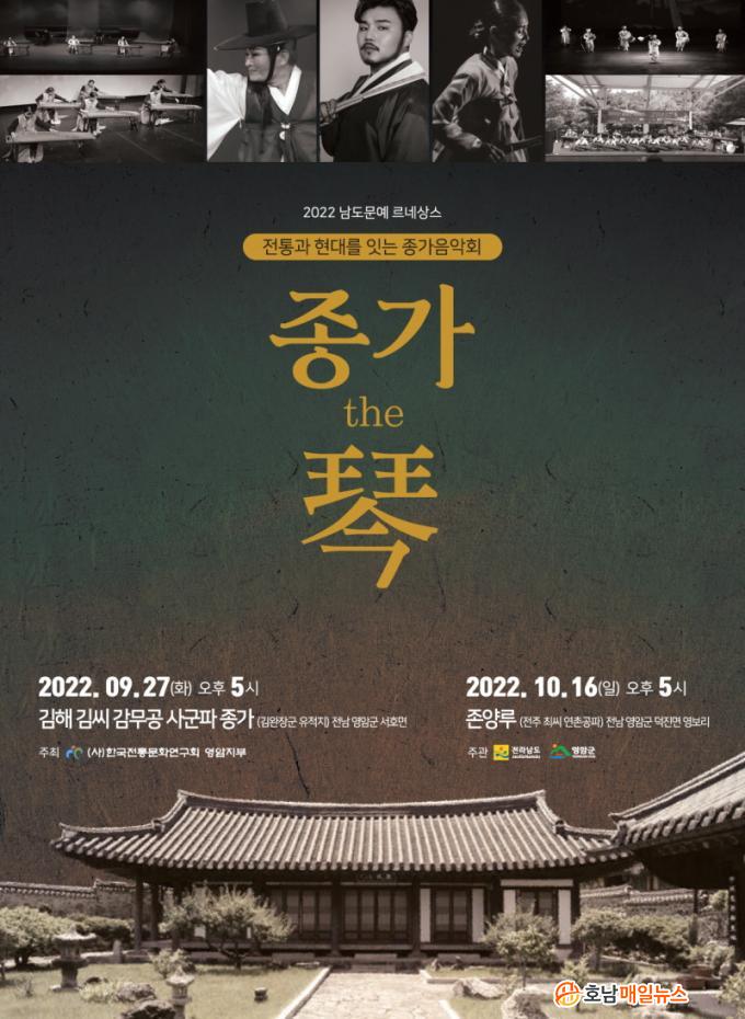 ÇÑÆí, ¡®Á¾°¡ ´õ ÐÖ¡¯À½¾Çȸ´Â Àü¶ó³²µµ °ø¸ð»ç¾÷ÀÎ ³²µµ¹®¿¹ ¸£³×»ó½º ½Ã¡¤±ºÆ¯È»ç¾÷¿¡ ¼±Á¤µÇ¾î ÃßÁøÇÏ´Â »ç¾÷À¸·Î 2ȸ¿¡ °ÉÃÄ Á¾°¡À½¾Çȸ¸¦ °³ÃÖÇÏ¸ç ´ÙÀ½ °ø¿¬Àº 10¿ù 16ÀÏ ¿ÀÈÄ5½Ã¿¡ ´öÁø¸é ¿µº¸¸® Á¸¾ç·ç(ÀüÁÖÃÖ¾¾ ¿¬Ã̰øÆÄ Á¾°¡)¿¡¼ °³ÃÖµÉ ¿¹Á¤À¸·Î À¯ÅÂÆò¾ç, Àü³²µµ¸³±¹¾Ç´Ü µîÀ» ÃÊûÇÏ¿© ´Ùä·Î¿î ÀüÅëÀ½¾Ç °ø¿¬À» ¼±º¸ÀÏ ¿¹Á¤ÀÌ´Ù.