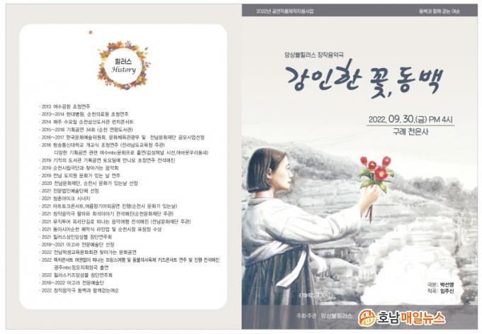 Áö³ÇØ¿¡ ÀÌ¾î µÎ ¹øÂ°·Î ¿¸®´Â À̹ø °ø¿¬Àº ¡®°ÀÎÇÑ ²É, µ¿¹é¡¯À̶ó´Â ÁÖÁ¦·Î °³ÃֵȴÙ. ¿©¼ø»ç°ÇƯº°¹ý ½ÃÇàÀ» ±â¾ïÇÏ°í ºñ±ØÀûÀÎ ¿ª»çÀÇ ÇöÀåÀ» Àü´ÞÇϰí À§·ÎÇϱâ À§ÇØ ¡®¿©¼ö ´ÙÅ©Åõ¾î¸®Áò¡¯ ÄÚ½º¸¦ Áß½ÉÀ¸·Î ½ºÅ丮ÅÚ¸µÇÏ¿© À½¾Ç°ú ¿ª»ç¸¦ Á¢¸ñÇÑ Ã¢ÀÛÀ½¾Ç±ØÀ¸·Î ±âȹÇÏ¿´´Ù.