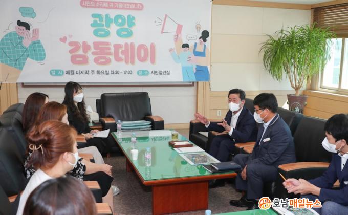 ÀÌ¾î ¡°ÇöÀå¿¡ Á÷Á¢ ³ª°¡ ½Ã¹ÎÀÇ ¸ñ¼Ò¸®¸¦ µè°íÀÚ ³ë·ÂÇÏÁö¸¸, ¹Ìó ¹ß±æÀÌ ¹ÌÄ¡Áö ¸øÇÑ ºÎºÐÀÌ ÀÖ¾î, ½Ã¹Î ´©±¸³ª ã¾Æ¿Í¼ ¸ñ¼Ò¸®¸¦ ³¾ ¼ö ÀÖ´Â ÀÚ¸®¸¦ ¸¶·ÃÇÑ °ÍÀÌ ¡®±¤¾ç °¨µ¿µ¥ÀÌ¡¯ÀÇ ÃëÁöÀÌ´Ù¡±¸ç, ¡°½Ã¹Î ¿©·¯ºÐÀÇ ¸ñ¼Ò¸®¸¦ µé·ÁÁÖ½Ã¸é ¾î¶°ÇÑ ÀÛÀº ¹®Á¦¶óµµ ¼ÒȦÈ÷ ÇÏÁö ¾Ê°í ÇØ°áÇϱâ À§ÇØ ÃÖ¼±À» ´ÙÇϰڴ١±°í µ¡ºÙ¿´´Ù.