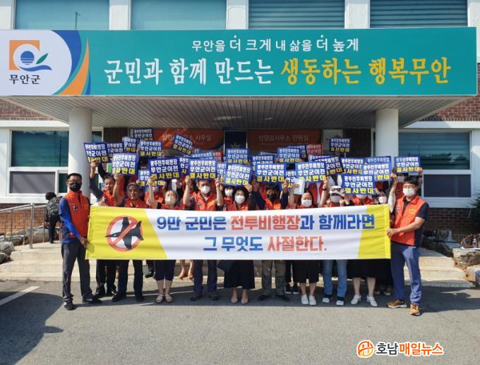 ÃÖ±Ù ±¤ÁÖ ±º °øÇ× ¿¹ºñÀÌÀüÈĺ¸Áö 1¼øÀ§°¡ ¹«¾È±ºÀ̶ó´Â ±Ù°Å ¾ø´Â ÃßÃø¼º º¸µµ°¡ Áö¼ÓµÊ¿¡ µû¶ó »ïÇâÀ¾ ÀÌÀåÇùÀÇȸ ¼Ò¼Ó ¸¶À»ÀÌÀå 70¿©¸íÀº ¡®¹«¾È±º¹Î°ú ¼³²±Ç ÁÖ¹ÎÀÇ »îÀÇ Áú Çâ»óÀ» ÀúÇØÇÏ´Â ±º °øÇ× ÀÌÀüÀ» Áï°¢ Áß´ÜÇ϶󡯴 ±¸È£¸¦ ¿ÜÄ¡¸ç °áÀÇ´ëȸ¸¦ °¡Á³´Ù.