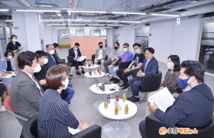 ° ½ÃÀåÀº 28ÀÏ ¿ÀÈÄ ±¤ÁÖÄÜÅÙÃ÷Çãºê°¡ Á¶¼ºµÅ ÀÖ´Â ÀüÀϺôµù245¿¡¼ ¡®Á¤Ã¥¼Òdz¡¯À» °³ÃÖÇÏ°í ¾Æ½Ã¾Æ¹®ÈÁ߽ɵµ½Ã Á¶¼ºÀÇ ÇÙ½ÉÀÎ ¾Ö´Ï¸ÞÀ̼Ç, °ÔÀÓ, À¥Å÷¡¤½ºÅ丮, Áö½Ä¼ºñ½º µî ÄÜÅÙÃ÷±â¾÷ °ü°èÀÚµéÀÇ ÇöÀå ¸ñ¼Ò¸®¸¦ ûÃëÇß´Ù.