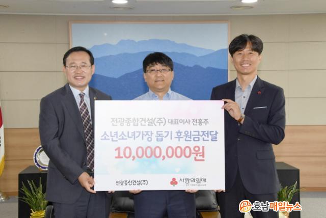 Àü±¤Á¾ÇհǼ³(ÁÖ)´Â Äڷγª19 À§±â»óȲÀ¸·Î ÀÎÇØ ´õ¿í ¾î·Á¿òÀ» °Þ°í ÀÖ´Â ¼Ò³â¼Ò³à°¡ÀåÀ» µ½°íÀÚ ÀÌ ³¯ 1,000¸¸¿øÀ» »çȸº¹Áö°øµ¿¸ð±Ýȸ¿¡ ÁöÁ¤±âŹ Çß´Ù.