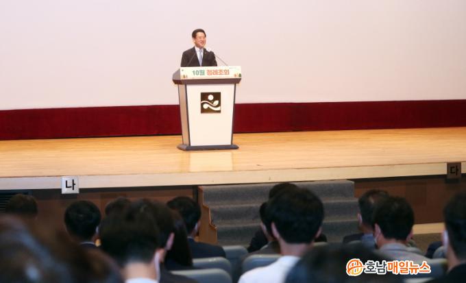 ±è Áö»ç´Â À̳¯ ¿ÀÀü µµÃ» ±è´ëÁß°´ç¿¡¼ ¹Î¼±8±â ù Á¤·ÊÁ¶È¸¸¦ ¿¾î ¡°¹Î¼±7±â ºí·ç ÀÌÄÚ³ë¹Ì 6´ë ÇÁ·ÎÁ§Æ® ÃßÁø, ¹æ»ç±¤ °¡¼Ó±â À¯Ä¡°æÀï µîÀ» °ÞÀ¸¸é¼ Àü³²µµ°¡ ¼¼°èÀû ¼öÁØÀÌ µÆ´Ù¡±¸ç À̰°ÀÌ ¹àÇû´Ù.