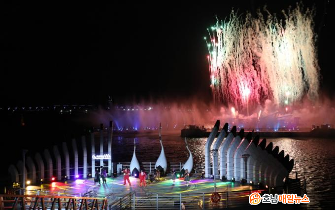 Åä¿äÀÏ Àú³á °ü¶÷ÇÒ ¼ö ÀÖ´Â ¡®¸ñÆ÷ÇØ»ó W¼î¡¯´Â ÃãÃß´Â ¹Ù´ÙºÐ¼ö¼î¿Í ºÒ²É¼î¿¡¼ ¿¬ÃâµÇ´Â WÇüŸ¦ ¸ðƼºê·Î ¡®¿ø´õÇ® ¸ñÆ÷(Wonderful Mokpo)¡¯¸¦ Ç¥ÇöÇÑ´Ù. ÀÌ»öÀû ºÐ¼ö․ºÒ²É¼î¿Í ¹ÂÁöÄà °ø¿¬ÀÇ Äݶ󺸷Π½Ã¹Î°ú °ü±¤°´ÀÇ ¶ß°Å¿î È£ÀÀÀ» ¾ò°í ÀÖ´Ù.