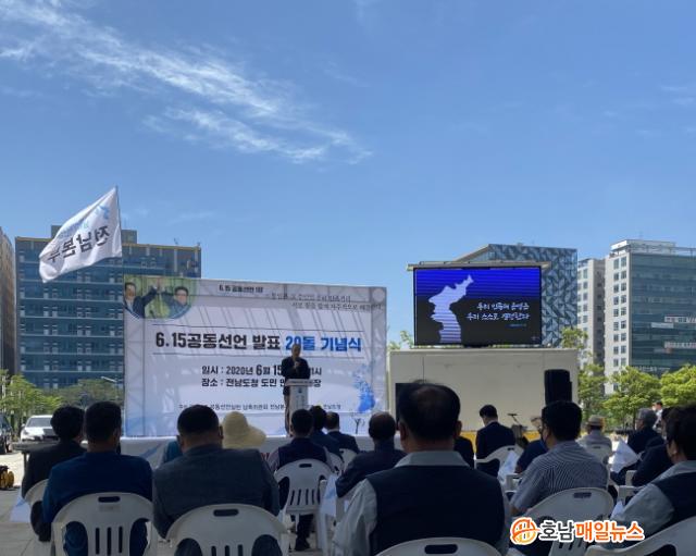 À̳¯ Àü³²µµÃ» µµ¹Î ¸¸³²ÀÇ ±¤Àå¿¡¼ ¿¸° ±â³ä½ÄÀº Áö³ 2000³â ¿ª»ç»ó ÃÖÃÊ·Î ³²ºÏ Á¤»óÀÌ ¸¸³ª ÈÇØ¿Í Çù·ÂÀ» ´ÙÁüÇß´ø 6¡¤15 ³²ºÏ°øµ¿¼±¾ð 20ÁÖ³âÀ» ¸Â¾Æ µµ¹Î°ú ÇÔ²² ³²ºÏ ¹Î°£±³·ù È®´ë¸¦ Ã˱¸Çϰí ÇѹݵµÀÇ ÆòÈÅëÀÏÀ» ¿°¿øÇϱâ À§ÇÑ ÀÚ¸®·Î ¸¶·ÃµÆ´Ù.