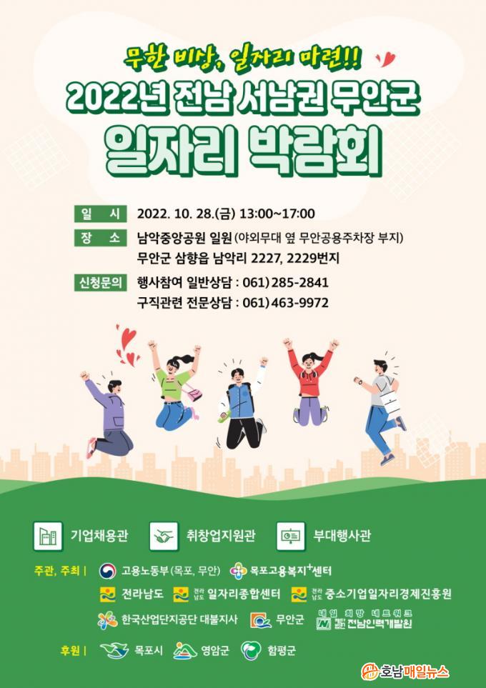 À̹ø ¹Ú¶÷ȸ´Â °í¿ë³ëµ¿ºÎ ¸ñÆ÷¡¤¹«¾È°í¿ëº¹ÁöÇ÷¯½º¼¾ÅÍ, Àü¶ó³²µµ, Àü¶ó³²µµ Áß¼Ò±â¾÷ÀÏÀÚ¸®°æÁ¦ÁøÈï¿ø, Àü¶ó³²µµ ÀÏÀÚ¸®Á¾ÇÕ¼¾ÅÍ, Çѱ¹»ê¾÷´ÜÁö°ø´Ü ´ëºÒÁö»ç°¡ °øµ¿ ÁÖ°üÇÏ°í ¹«¾È±ºÀÌ ÁÖÃÖÇÏ¸ç ¸ñÆ÷½Ã, ¿µ¾Ï±º, ÇÔÆò±ºÀÇ ÈÄ¿øÀ¸·Î ¼³²±Ç Àüü °í¿ë½ÃÀåÀ» ¾Æ¿ì¸¥´Ù.