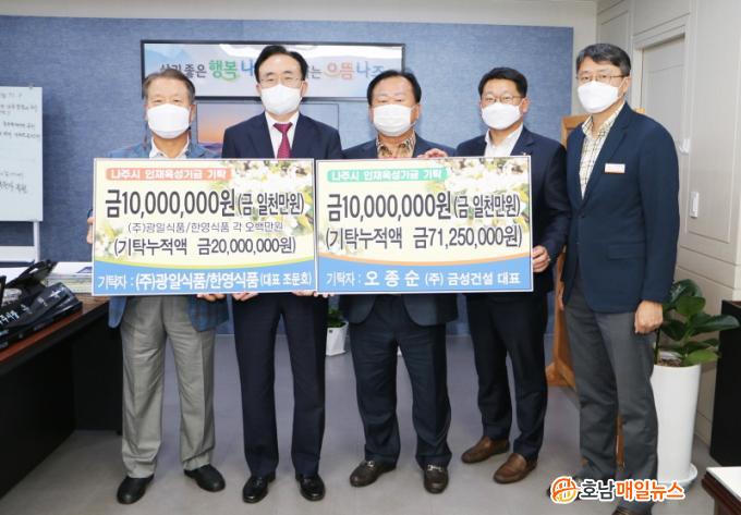 À±º´Å ³ªÁÖ½ÃÀåÀº ¡°´©±¸º¸´Ù ¾ÕÀå¼ Áö¿ª ¹ßÀü¿¡ ±â¿©ÇØÁֽô µÎ ºÐ ´ëÇ¥²²¼ ³ªÁÖ¸¦ ºû³¾ ÀÎÀçµéÀ» À§ÇÑ ±â±ÝÀ» ±âÅ¹ÇØÁּż °¨»çµå¸°´Ù¡±¶ó¸ç ¡°Çо÷ ¿©°ÇÀÌ ³ì·ÏÄ¡ ¾ÊÀº ÇлýµéÀ» À§ÇÑ ÀåÇбÝÀ¸·Î °í·ç ¾²ÀÏ ¼ö ÀÖµµ·Ï ´ë»óÀÚ ¼±Á¤¿¡ ½ÅÁßÀ» ±âÇÏ°í ¾çÁúÀÇ ±³À° ¿©°Ç °³¼±À» À§ÇØ ¼ÒÁßÈ÷ »ç¿ëÇϰڴ١±¶ó°í ¸»Çß´Ù.