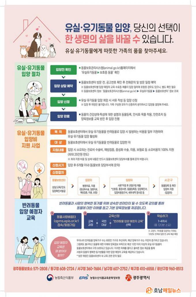 ÀÌ¿Í °ü·Ã, ±¤Áֽô ¿ÃÇØ À¯±âµ¿¹° ÀÔ¾çºñ¸¦ 8¿ù ¸» ±âÁØ 173°ÇÀ» Áö¿øÇß´Ù. ÀÔ¾çºñ Áö¿øÀ» Èñ¸ÁÇÏ´Â ½Ã¹ÎÀº ±¤Áֽà µ¿¹°º¸È£¼Ò¿¡¼ ÀÔ¾çÈ®Àμ¸¦ ¹ß±Þ¹Þ¾Æ µ¿¹°µî·ÏÀ» ¿Ï·áÇÑ ÈÄ ÀÔ¾çºñ û±¸¼ ¹× ¼¼ºÎ³»¿ª ¿µ¼öÁõ µîÀ» ÀÛ¼ºÇØ Áֹεî·Ï»ó ÁÖ¼ÒÁö ±âÁØ °üÇÒ ÀÚÄ¡±¸¿¡ ÀÔ¾çÀϷκÎÅÍ 6°³¿ù À̳»¿¡ ½ÅûÇϸé ÀÔ¾ç 1¸¶¸®´ç ÃÖ´ë 25¸¸¿øÀ» ¹ÞÀ» ¼ö ÀÖ´Ù.