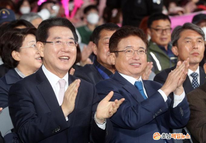 À̳¯ Çà»ç¿¡ Âü¼®ÇÑ ¿µÈ£³² Áö¿ª¹Îµéµµ Àü³²-°æºÏÀÌ À̲ø¾î°¥ Áö¹æ½Ã´ë¿¡ ´ëÇÑ ±â´ë°¨¿¡ ¶ß°Å¿î ¹Ú¼ö°¥Ã¤¸¦ ¿¬ÀÌ¾î ½ñ¾Æ³Â´Ù.