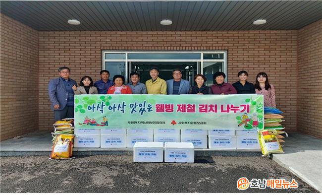µÎ¿øÁö»çÇùÀº Áö³ 6ÀÏ À§¿ø 13¸íÀÌ Âü¿©ÇÑ °¡¿îµ¥ µ¶°Å³ëÀÎÀÇ °æÁ¦Àû ºÎ´ãÀ» ¿ÏÈÇÏ°í ½ÇÁúÀûÀ¸·Î ¾î·Á¿î ÀÌ¿ô¿¡°Ô µµ¿òÀ» ÁÖ±â À§ÇØ ¹èÃߤý¿¹«±èÄ¡(10kg, 60¹Ú½º)¿Í µ¿Àý±â ´ëºñ µû¶æÇÏ°í Æ÷±ÙÇÑ À̺Ò(45¼¼Æ®) µîÀ» 105°¡±¸¿¡ Àü´ÞÇß°í, ¹æ¹® °¡Á¤¸¶´Ù ¸»¹þ°ú ¼Ò¼ÒÇÑ ¼ºñ½ºµµ ÇÔ²² Á¦°øÇß´Ù.