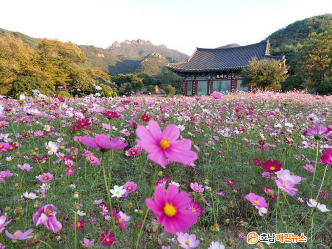 °íÈï Á¦1°æÀÎ ÆÈ¿µ»ê ¾Æ·¡ À§Ä¡ÇÑ ´É°¡»ç´Â º½¿¡´Â ¸ñ·Ã, º¢²É°ú ºÓÀº µ¿¹éÀÌ Àå°üÀ» ÀÌ·ç°í, °¡À»¿¡´Â ´Ùä·Î¿î ÄÚ½º¸ð½º ²É¹çÀÌ ÆîÃÄÁ® ½É½ÅÀÌ ÁöÄ£ ¹æ¹®°´µé¿¡°Ô Àα⸦ ´õÇϰí ÀÖ´Ù.
