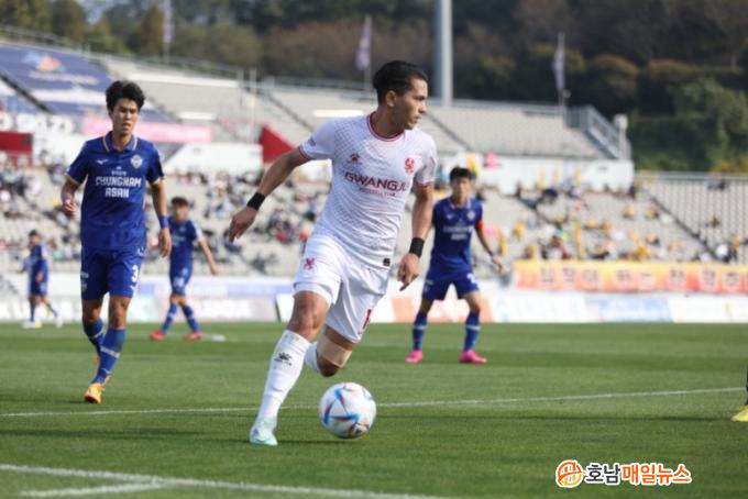 ±¤ÁÖ´Â Àü¹Ý ÃʹݺÎÅÍ Ãæ³²¾Æ»ê°ú Ä¡¿ÇÑ °ø¹æÀüÀ» ÆîÃÆ´Ù. Àü¹Ý 20ºÐ ±¤ÁÖ°¡ ¸ÕÀú À§ÇùÀûÀÎ Àå¸éÀ» ¸¸µé¾ú´Ù. ¸¶ÀÌŰÀÇ °·ÂÇÑ ½´ÆÃÀ» ¾Æ»ê °ñŰÆÛ ¹ÚÇѱÙÀÇ ¼ÕÀ» ¸Â°í °ñ´ë¸¦ °Å¸Çß´Ù.