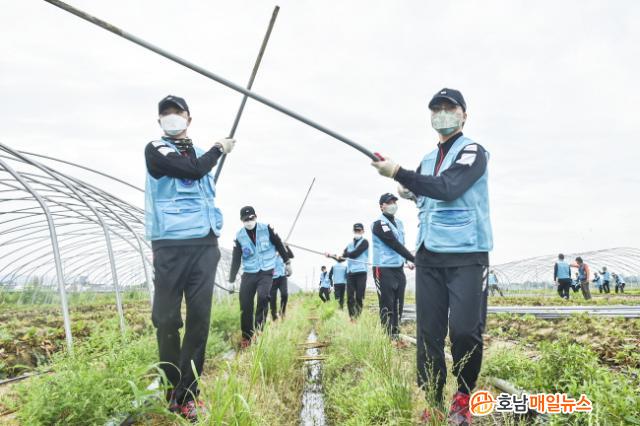 ³óÃÌ Àϼյ½±â¿¡ ³ª¼± 40¸íÀÇ 1Àüºñ À庴µéÀº º½Ã¶ µþ±â ³ó»ç¿¡ »ç¿ëµÈ ºñ´ÒÇϿ콺 ö°Å ÀÛ¾÷À» µµ¿Ô´Ù. 1Àüºñ À庴µéÀº º»°ÝÀûÀ¸·Î ½ÃÀÛµÈ ¹«´õÀ§ ¼Ó¿¡¼µµ Áö¿ª ³ó¹ÎµéÀÇ ½Ã¸§À» ´ú¾îÁÖ±â À§ÇØ ÃÖ¼±À» ´ÙÇØ ÀÛ¾÷¿¡ ÀÓÇß´Ù.