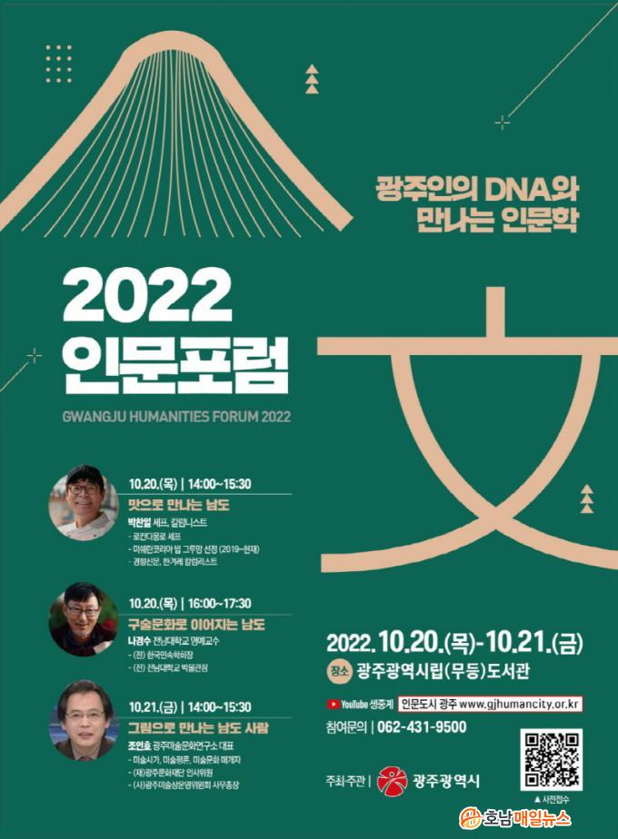 ±¤ÁÖ±¤¿ª½Ã´Â Àι®ÁÖ°£À» ¸Â¾Æ 20ÀϺÎÅÍ ÀÌÆ²°£ ½Ã¸³¹«µîµµ¼°ü¿¡¼ ¡®±¤ÁÖÀÎÀÇ DNA¿Í ¸¸³ª´Â Àι®ÇС¯À̶ó´Â ÁÖÁ¦·Î ¡®2022 Àι®Æ÷·³¡¯À» °³ÃÖÇÑ´Ù.