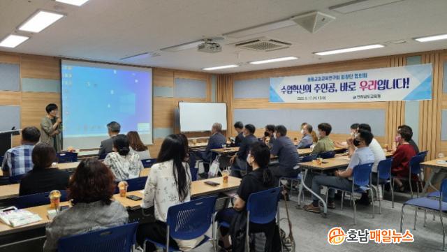 Àü¶ó³²µµ±³À°Ã»(±³À°°¨ Àå¼®¿õ)ÀÌ 17ÀÏ(¼ö) º¸¼ºÃ»¼Ò³â¼ö·Ã¿ø¿¡¼ Áߵ°ú±³À°¿¬±¸È¸ ȸÀå´Ü 40¸íÀÌ Âü¼®ÇÑ °¡¿îµ¥ Æ÷½ºÆ®Äڷγª½Ã´ë¿¡ ´ëºñÇÑ ¼ö¾÷Çõ½Å ¹ßÀü¹æ¾ÈÀ» °±¸ÇÏ´Â ÇùÀÇȸ¸¦ °¡Á³´Ù.