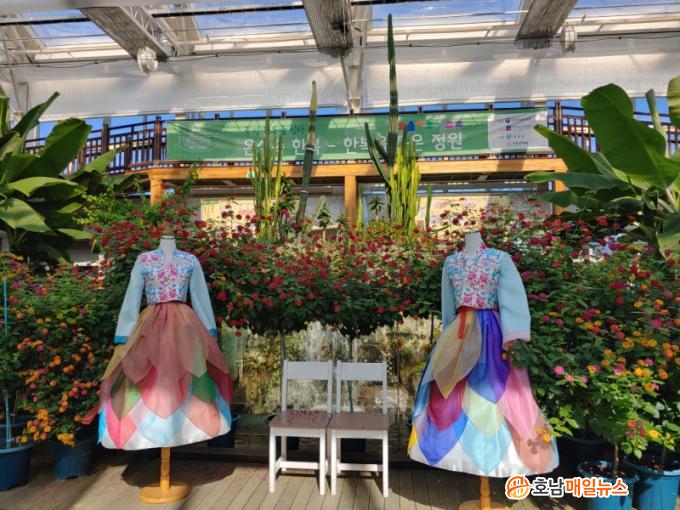 Àü½ÃµÈ ÇѺ¹Àº ±¤ÁÖ´ëÇб³ ÁÖ¾ó¸® µðÀÚÀΰú ¾È¸í¼÷ ±³¼ö¿Í Çù¾÷ÇØ Á¦ÀÛÇÑ ÀÛǰÀÌ´Ù. ¸íÁÖ ¼ÒÀç µîÀ» Ȱ¿ëÇØ ÀºÀºÇÑ ºñħ°ú ±¤ÅÃÀ» »ì·È´Ù. ¶ÇÇÑ Àå¹Ì¸¦ ¸ðƼÇÁ(motif)·Î »ö°ú ÆÐÅÏ, ¿Ê¼± µîÀ» È·ÁÇϸ鼵µ Çö´ëÀûÀ¸·Î µðÀÚÀÎÇß´Ù. ±×¸®°í ¡®ÇѺ¹À» ǰÀº Á¤¿ø¡¯À̶ó´Â ÄܼÁÆ®·Î ÀÛǰµéÀ» À¯¸® ¿Â½Ç¿¡ Àü½ÃÇØ ¿ÀºêÁ¦ÈÇß´Ù.