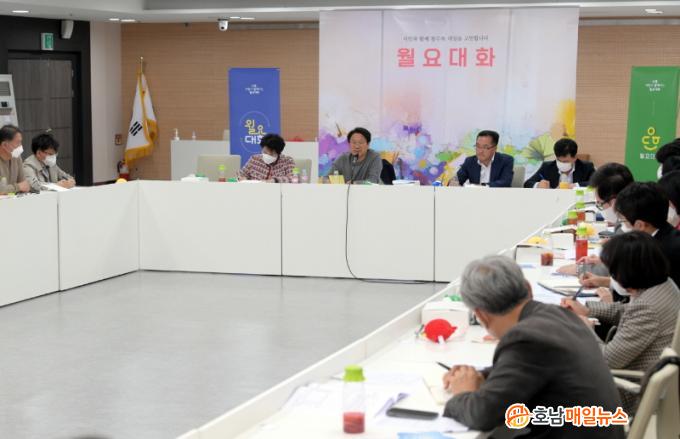 ¡®¿ù¿ä´ëÈ¡¯´Â ±³À°¡¤Ã»³â¡¤°æÁ¦¡¤Ã¢¾÷ µî °¢°è°¢ÃþÀÇ »ç¶÷µé°ú Áö¿ª Çö¾È¿¡ ´ëÇØ À̾߱âÇÏ´Â ÀÚ¸®·Î ¡®³»ÀÏÀÌ ºû³ª´Â ±âȸµµ½Ã ±¤ÁÖ¡¯ ½ÇÇöÀ» À§ÇÑ ½ÃÀå ÁÖÀç ´ëÈ Ã¢±¸´Ù. ¡®°ÝÀÇ ¾ø´Â ¸¸³²¡¯°ú ¡®ÁøÁ¤¼º ÀÖ´Â ¼ÒÅ롯À» ¸ñÇ¥·Î ÇÏ¸ç ¡ã°æÃ»Çϱ⠡㼳µæÇÏÁö ¾Ê±â ¡ã´ëÈ Áß ³¢¾îµéÁö ¾Ê±â 3°¡Áö ¿øÄ¢ ¾Æ·¡ ÁøÇàµÈ´Ù. 11¿ù7ÀÏÀº ȯ°æ ºÐ¾ß¸¦ ³íÀÇÇÒ ¿¹Á¤ÀÌ´Ù.