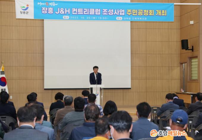 ÀåÈï J&H ÄÁÆ®¸®Å¬·´Àº ÀåÈﱺ ´ë´öÀ¾ ¿¬Áö¸® ÀÏ´ë¿¡ °ñÇÁÀå ¹× ¼÷¹Ú½Ã¼³À» ºñ·ÔÇÑ ºÎ´ë½Ã¼³ Á¶¼ºÀ» ¸ñÀûÀ¸·Î ÇÏ´Â »ç¾÷ÀÌ´Ù. À̳¯ °øÃ»È¸´Â Áö¿ª¹ÎÀ» ´ë»óÀ¸·Î ÇÑ »ç¾÷°èȹ ¼³¸í°ú ÁÖ¹ÎÀǰßÀ» ¼ö·ÅÇϱâ À§ÇÑ ÀÚ¸®·Î ¸¶·ÃµÆ´Ù.