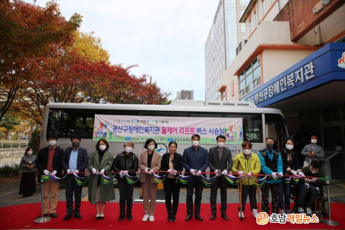 ±¤»ê±¸Àå¾ÖÀκ¹Áö°üÀº 26ÀÏ Áö¿ª Àå¾ÖÀδÜü¿Í ÇÔ²² ÈÙü¾î ¸®ÇÁÆ® ¹ö½º Â÷·® ½Ã½Â½ÄÀ» °¡Á³´Ù. ±¤»ê±¸Àå¾ÖÀκ¹Áö°üÀÌ ¸¶·ÃÇÑ ÈÙü¾î ¸®ÇÁÆ® ¹ö½º´Â ¸Å¸³Çü ÈÙü¾î ¸®ÇÁÆ®¿Í ÈÙü¾î °íÁ¤º§Æ® µî ÆíÀÇÀåÄ¡¸¦ °®Ãç, ÈÙü¾î¸¦ »ç¿ëÇÏ´Â Àå¾ÖÀÎÀÌ ¾ÈÀüÇÏ°Ô ½Â‧ÇÏÂ÷ÇÒ ¼ö ÀÖ´Ù.