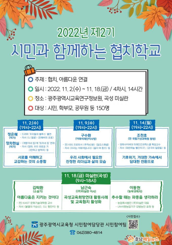 ¡®2022 Á¦2±â ½Ã¹Î°ú ÇÔ²²ÇÏ´Â ÇùÄ¡Çб³¡¯´Â ¡®ÇùÄ¡, ¾Æ¸§´Ù¿î ¿¬°á¡¯À̶ó´Â ÁÖÁ¦·Î ÇùÄ¡¡¤¼ÒÅ롤°ø°¨¡¤±âÈÄȯ°æ µî ´Ù¾çÇÑ ÁÖÁ¦¸¦ ´Ù·ï ±¤ÁÖ±³À°ÀÇ ÇùÄ¡ ¿ª·®À» ³ôÀÏ ¼ö ÀÖµµ·Ï ¸¶·ÃµÆ´Ù.