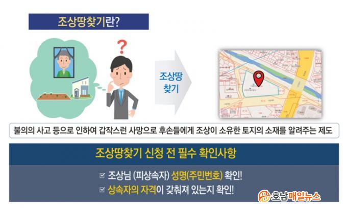 Á¶»ó ¶¥ ã±â´Â ÅäÁö ¼ÒÀçÁö³ª °ÅÁÖÁö¿¡ »ó°ü¾øÀÌ Àü±¹ ½Ã±º¿¡¼ ¹«·á·Î ½ÅûÇÒ ¼ö ÀÖ´Ù. ÅäÁö ¼ÒÀ¯ÀÚ´Â ½ÅºÐÁõ, »ó¼ÓÀÎÀº Á¦Àûµîº» ¶Ç´Â °¡Á·°ü°èÁõ¸í¼³ª ±âº»Áõ¸í¼¸¦ Á¦ÃâÇØ¾ß ÇÑ´Ù.