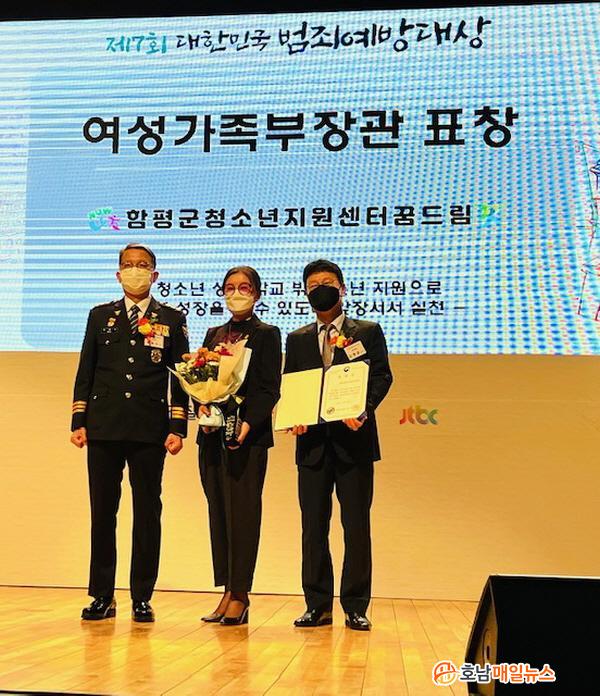 ÇÔÆò±ºÀº ¡°°æÂûû°ú Áß¾ÓÀϺ¸°¡ °øµ¿ ÁÖÃÖÇÏ´Â ¡®Á¦7ȸ ´ëÇѹα¹ ¹üÁË¿¹¹æ´ë»ó¡¯¿¡¼ Áö³ 26ÀÏ »çȸÀû¾àÀÚ º¸È£ ºÎ¹® ÃÖ¿ì¼ö´Üü·Î ¼±Á¤µÅ ¿©¼º°¡Á·ºÎÀå°ü ǥâÀ» ¼ö»óÇß´Ù¡±°í 31ÀÏ ¹àÇû´Ù.