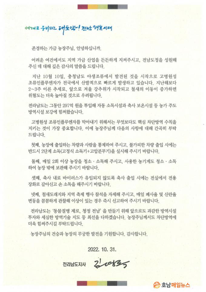 ±è¿µ·Ï Àü³²µµÁö»ç´Â ¼Çѹ®À» ÅëÇØ ¡°Áö³ 10¿ù Ãæ³²¿¡¼ °íº´¿ø¼º Á¶·ùÀÎÇ÷翣ÀÚ°¡ °ËÃâµÈ °ÍÀ» ½ÃÀÛÀ¸·Î Àü±¹ ¾ß»ýÁ¶·ù¿Í °¡±Ý³óÀåÀ¸·Î ºü¸£°Ô È®»êÇϰí ÀÖ´Ù¡±¸ç ¡°µµ³» À¯ÀÔÀ» ¸·±â À§ÇØ °¡±Ý³óÀå¿¡¼ ÇÙ½É ¹æ¿ª¼öÄ¢À» öÀúÈ÷ ÁöÄÑÁÙ °Í¡±À» °Á¶Çß´Ù.