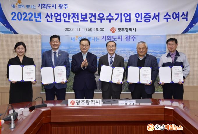 ±¤ÁÖ±¤¿ª½Ã´Â 1ÀÏ ½Ãû¿¡¼ ¡®2022³â »ê¾÷¾ÈÀüº¸°Ç ¿ì¼ö±â¾÷¡¯ 5°÷¿¡ ´ëÇØ ÀÎÁõ¼¿Í ÇöÆÇÀ» ¼ö¿©Çß´Ù.