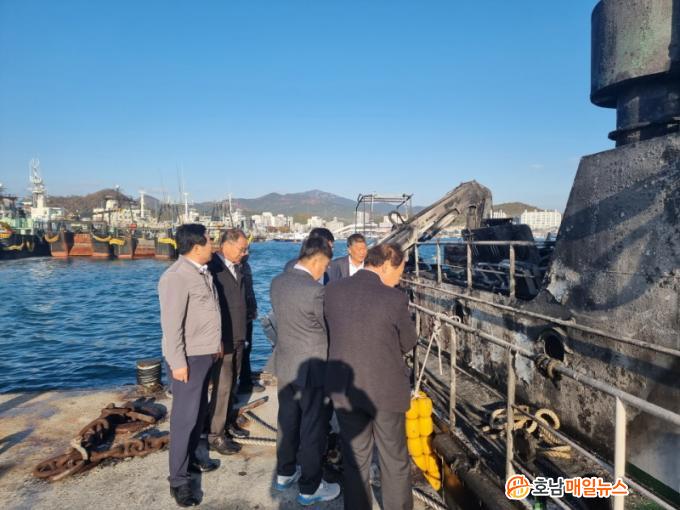 ³ó¼ö»êÀ§¿øÈ¸ À§¿øµéÀº ÈÀç ÇöÀå¿¡ ¹æ¹®ÇÏ¿© ¼Ò¹æ°ü°ú ÇØ°æ µî ÈÀç Áø¾Ð °ü°èÀÚµéÀÇ ³ë°í¿¡ °¨»çÀÇ ¸»À» ÀüÇß´Ù. ¶ÇÇÑ, Àü³²µµ °ü°èÀڵ鿡°Ô Á¤È®ÇÑ ÈÀç ¿øÀÎ ±Ô¸í°ú ÇÔ²² Àç¹ß¹æÁö¸¦ À§ÇØ Àü³²µµ °üÇÒ ¼±¹Ú¿¡ ´ëÇÑ ¾ÈÀü Á¡°ËÀ» ½Ç½ÃÇϵµ·Ï ¿äûÇß´Ù.