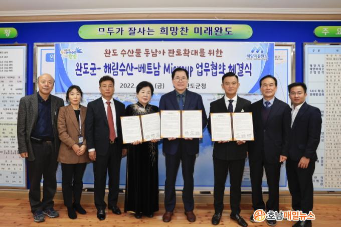 À̳¯ Çù¾à½Ä¿¡´Â ½Å¿ìö ¿Ïµµ±º¼ö¿Í ÇØ¸²¼ö»ê Â÷¿µ½É ´ëÇ¥, º£Æ®³² ¹Ì±×·ì µò¹Î ȸÀå µî 10¿© ¸íÀÌ Âü¼®Çß´Ù. Çù¾àÀ» ÅëÇØ ûÁ¤¹Ù´Ù ¿Ïµµ¿¡¼ »ý»êµÇ´Â ¼ö»ê¹°ÀÌ º£Æ®³²¿¡ ¿øÈ°È÷ ¼öÃâµÉ ¼ö ÀÖµµ·Ï Çϰí, º£Æ®³²¿¡¼ ¿Ïµµ ¼ö»ê¹°À» È«º¸ÇÏ°í ÆÇ¸ÅÇÏ´Â µ¥ »óÈ£ Àû±Ø Çù·ÂÇϱâ·Î Çß´Ù.