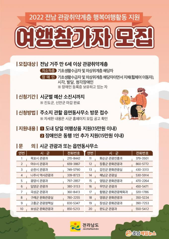 ÀÌ´Â °æÁ¦Àû ¾î·Á¿ò°ú °Åµ¿ ºÒÆíÀ» ÀÌÀ¯·Î ¿©ÇàÀÌ ¾î·Á¿ü´ø °ü±¤Ãë¾à°èÃþÀÇ ¿©ÇàȰµ¿ ¹üÀ§¸¦ ³ÐÈ÷°í ´Ù¾çÈÇϱâ À§ÇÑ °ÍÀÌ´Ù. ¸ðÁý ´ë»óÀº Àü³²¿¡ °ÅÁÖÇÏ´Â ±âÃÊ»ýȰº¸Àå ¼ö±ÞÀÚ¿Í Â÷»óÀ§°èÃþ¿¡ ÇØ´çÇÏ´Â Àú¼ÒµæÃþ°ú Àú¼ÒµæÃþ Áöü(ÈÙü¾î À̵¿ÀÚ)․½Ã°¢․¹ß´Þ․û°¢ Àå¾ÖÀÎÀÌ´Ù.