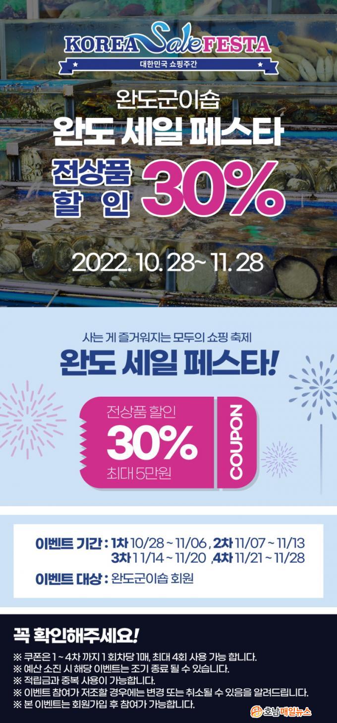 ¿Ïµµ±ºÀ̼ó(wandofood.go.kr)¿¡¼´Â ¡®ÄÚ¸®¾Æ ¼¼ÀÏ Æä½ºÅ¸¡¯ ±â°£ Áß ¸ðµç »óǰ ±¸¸Å ½Ã »ç¿ëÇÒ ¼ö ÀÖ´Â 30% ÇÒÀÎ ÄíÆù(ÃÖ´ë 5¸¸ ¿ø ÇÒÀÎ)À» ȸÂ÷ º°·Î 1ȸ ¾¿ ¹ßÇàÇÑ´Ù.