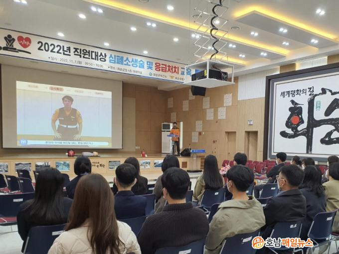 ȼø¼Ò¹æ¼ ÀÌÀç¿õ ¼Ò¹æÀåÀ» ÃʺùÇØ ¡ãÀÀ±ÞȯÀÚ ¹ß»ý ½Ã ½Å°í ¹æ¹ý°ú ÀýÂ÷ ¡ã»ýȰ ¼Ó ÀÀ±Þóġ ¡ã½ÉÆó¼Ò»ý¼ú°ú ÀÚµ¿½ÉÀåÃæ°Ý±â(AED) ÀÛµ¿¹ý µî À̷аú ½Ç½ÀÀ» º´ÇàÇØ ÁøÇàÇß´Ù.
