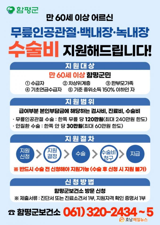 ¹«¸Àΰø°üÀýÀº ¹«¸´ç 120¸¸¿ø¾¿ ÃÖ´ë 240¸¸¿ø±îÁö, ¹é³»À塤³ì³»Àå°ú °°Àº ¾ÈÁúȯ ¼ö¼úÀº 1¾È(äÑ)´ç 30¸¸¿ø¾¿ ÃÖ´ë 60¸¸¿ø±îÁö Áö¿øµÈ´Ù. ½ÅûÀº ¹Ýµå½Ã ¼ö¼úÀ» ¹Þ±â Àü¿¡ ÇØ¾ß Çϸç, Áø´Ü¼(¶Ç´Â ¼Ò°ß¼)¿Í ÀÚ°Ý Áõ¸í¼·ù¸¦ ÁöÂüÇØ ÇÔÆò±º º¸°Ç¼Ò·Î ¹æ¹®ÇÏ¸é µÈ´Ù.