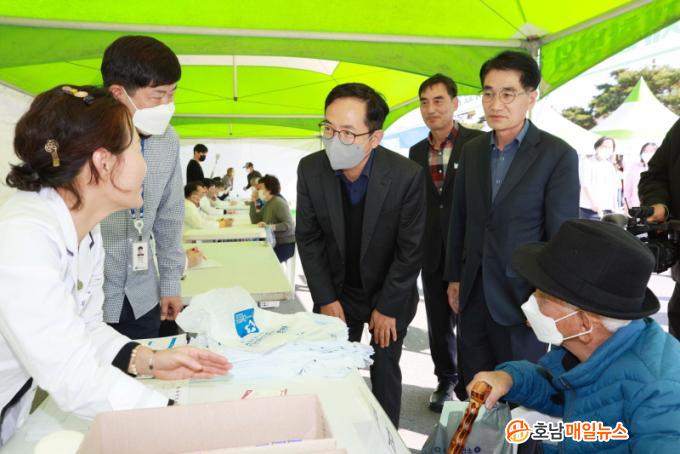 ¹Úö¿ø ȼø ºÎ±º¼öµµ ÀÇ·á ºÀ»ç ÇöÀåÀ» ã¾Æ ÁֹεéÀÇ ¾ÈºÎ¸¦ »ìÇÇ°í ºÀ»ç¿¡ ³ª¼± ÀÇ·áÁø¿¡°Ô °í¸¶¿òÀ» Ç¥Çß´Ù.