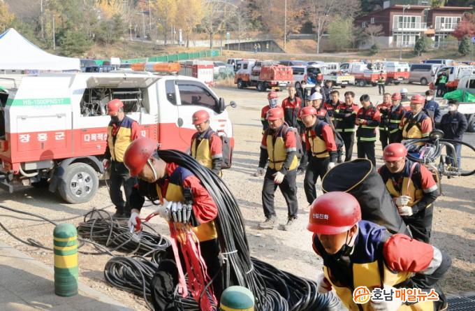 Àü³² µ¿ºÎ±Ç 11°³ ½Ã±º »êºÒ °ü°è °ø¹«¿ø°ú »êºÒ ¿¹¹æ Àü¹® ÁøÈ´ë¿ø 100¿© ¸íÀÌ Âü¼®ÇÑ À̹ø °æ¿¬Àº °ø¹«¿ø 1¸í°ú ÁøÈ´ë¿ø 8¸íÀÌ ÇÑ ÆÀÀ» ÀÌ·ï ÁøÈ¿ë¼ö 100¸®Å͸¦ »¡¸® ´ã¼öÇÏ´Â °ÍÀ¸·Î ÁøÇàµÆ´Ù. °¢ ½Ã±ºÀÇ ÁøÈ¿î¿ë ´É·Â, ÆÀ¿öÅ© µî Æò¼Ò ÈÆ·ÃÀ¸·Î ÁغñµÈ ¿ª·® µîÀ» Æò°¡Çß´Ù.