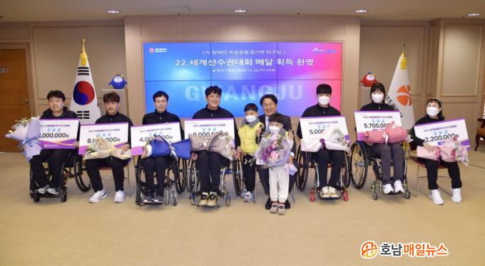 ±¤ÁÖ¼±¼ö´ÜÀº À̹ø ´ëȸ¿¡¼ ±Ý¸Þ´Þ 6°³, Àº¸Þ´Þ 2°³, µ¿¸Þ´Þ 4°³ ÃÑ 12°³ÀÇ ¸Þ´ÞÀ» ȹµæÇß´Ù. ƯÈ÷ ±èÁ¤±æ¡¤±è¿µ°Ç¡¤¹ÚÁøÃ¶ ¼±¼ö°¡ 2°ü¿ÕÀ» Â÷ÁöÇß°í ±è¼º¿Á¡¤³²±â¿ø¡¤¼¼ö¿¬ ¼±¼ö µî ÃâÀü¼±¼ö 6¸í Àü¿ø ¸Þ´Þ ȹµæÀ̶ó´Â Äè°Å¸¦ ÀÌ·ð´Ù.